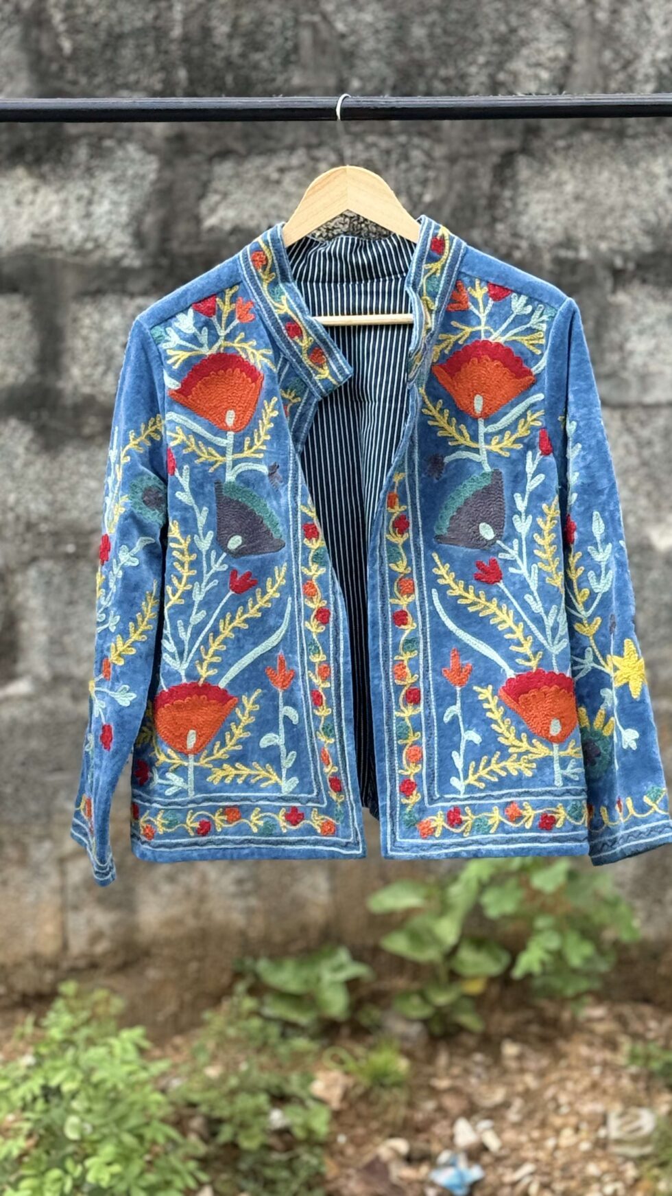 Luxurious velvet jacket featuring intricate Suzani embroidery. Perfect blend of elegance and tradition — ideal for festive and ethnic occasions.